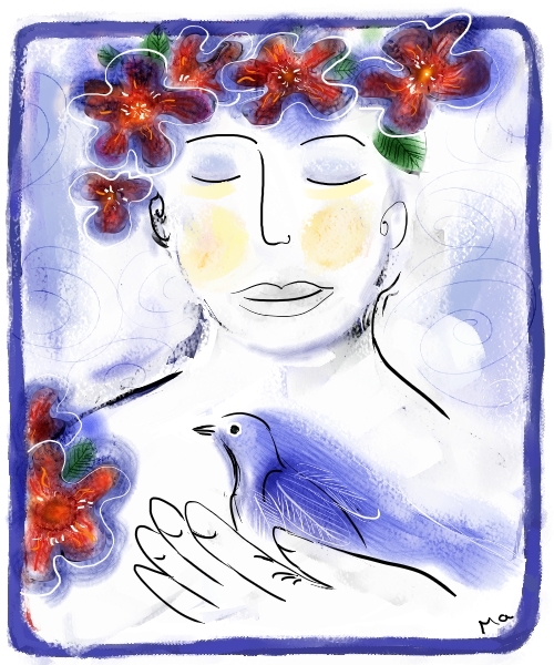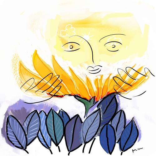 Im Traum fuhren wir. Er saß neben mir, er saß am Steuer. Da berührte ich ihn wie spielersich zart mit meiner Hand. Nach einer Weile wies ich mit dem Zeigefinger auf eine große Blütenknospe, die sich jetzt vor ihm befand und erst noch grün und ganz geschlossen war, sich aber durch die Berührung nach und nach zur vollen Blüte entfaltet hat. Es war eine wunderschöne orangefarbene Lilie, wie ich sie noch nie gesehen habe.