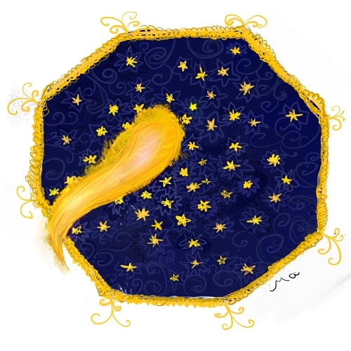 Eine goldene Seele ist aus dem Sternenhimmel einer Moschee herab gewachsen