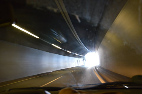 Gleich nach dem Pfändertunnel rechts von der Autobahn ein schwirrender Regenbogen, ganz nahe der Erde, als stände er fest verankert im Grün. Regenbögen wachsen aus den Gischtfontänen der Autos um uns herum.