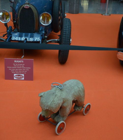 Der kleine und schon sehr in die Jahre gekommene Bär stiehlt allen die Schau, sogar dem teuersten Buggati!