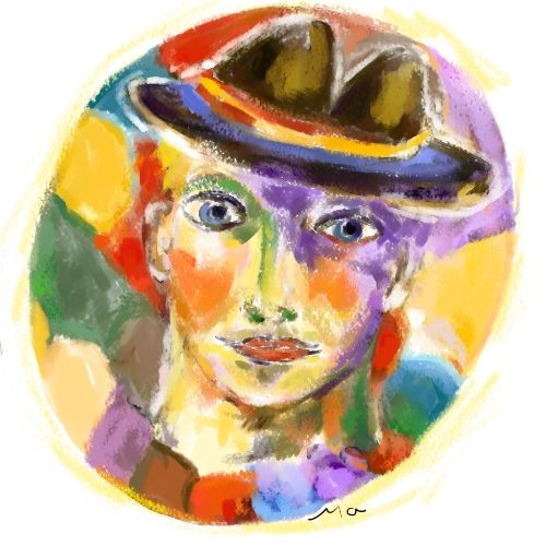 Buntes Bild: als Mann verkleideten Frau mit Hut