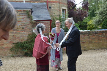 Erste Gratulantin. Die kleine Schar der Gäste Gäste international, aus sieben Nationen.