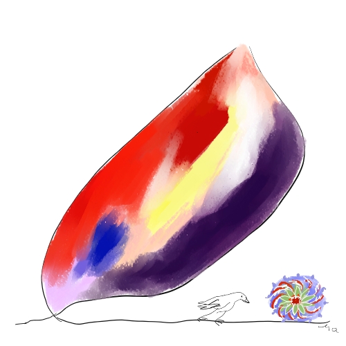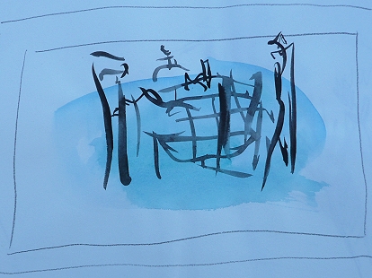 Ich träumte, daß ich dasaß und ein Bild auf meinem Schoß in der Hand hielt. Es war ein Aquarell. Es zeigte eine blautürkise Wolke, einen Himmel, darin war mit schwarzen Linien ein Haus gemalt. Ein Schloß. Oder waren es arabische Schriftzeichen? Ein schwebendes, orientalisches Gebäude. Es hieß: Du hast mich gerufen...