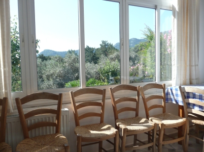 Die Akademie: Der Eßraum und ein kleiner Bereich des Gartens