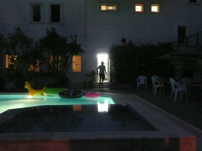 Eine Gottesanbeterin flog auf den Abendbrottisch, um den wir alle saßen. Wie ein Stein landete sie mit einem lauten Geräusch auf der Tischplatte. Sie landete bei meiner Tischnachbarin und ging dann langsam, wie ein Roboter, zielstrebig in meine Richtung. Noch nie hatte ich solch ein Tier aus der Nähe gesehen! Sie war über zehn Zentimeter groß. Ungerührt starrte die Gottesanbeterin um sich, sie wirkte dabei selbst wie eine unnahbare Göttin. Was für ein seltsames, was für ein außergewöhnliches und schrecklich schönes Geschöpf! Ich sprang vor Schreck, als sie näher und näher zu mir schritt, schnell vom Stuhl auf, so daß er laut nach hinten umkippte. Schließlich flog sie in einem weiten Bogen in Richtung der bewachsenen Steinmauer hinter dem Pool.