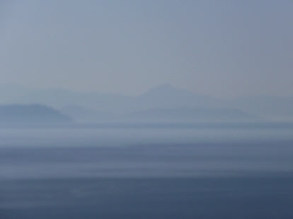 Ich träumte auch von der Bucht. Und ich träumte von Zweien, die zwischen den beiden Bergen über das Wasser, über den Horizont gingen. Sie konnten auf den Horizont gehen.