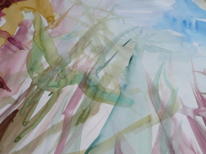 In der Nacht, wenn ich im Bett lag und die Augen geschlossen hatte, explodierten die Farben vor meinem inneren Auge. Bild um Bild entstand, erwuchs, begann sich zu entfalten. Aquarellbilder, wie ich sie bei Tage malte, nur viel schöner, viel üppiger. So als malte jemand weiter. Dieser Künstler kannte keine Begrenzung, eine Hemmung, alles was er tat, tat er vollkommen. Eine unsichtbare Hand hält einen unsichtbaren Pinsel und malt und malt. Wie aus einem Füllhorn begannen Linien und Farben aus dem Nichts zu wachsen. Sich wogende Farbbäume, mit Schmetterlingsflügeln.