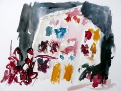 Wir hörten, während wir malten, klassische Musik, und die Musik begleitete uns den ganzen Tag. So wie das Blau des Meeres, das wir ständig vor Augen hatten, dieses Azurblau, welches zum Horizont hin mehr und mehr verblaßte um schließlich mit dem Himmel eins zu werden. Dem Himmel, der so durchscheinend weiß war.