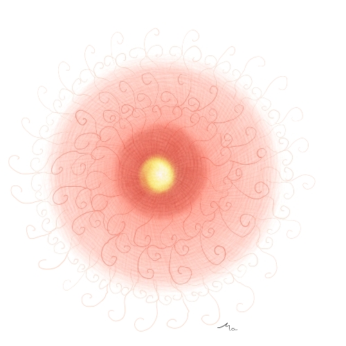 Ich träumte von diesem da. Ist es eine Frucht? Die Frucht, sie war sehr groß, im Durchmesser mindestens eineinhalb Meter, und zur Hälfte aufgeschnitten, wurde, glaube ich, auf einer Straße entlanggezogen. Sie leuchtete sehr und sah äußerst ungewöhnlich aus.