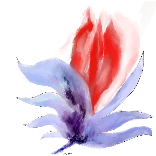 Beim Aufwachen träumte ich, daß ich eine rosafarbene Blüte vor blauem Hintergrund mit Pastellkreide male.