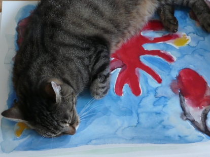 Heut ist die kleine Schwalbe gestorben. Am frühen Morgen. Sie lag zu meinem Schrecken mit ausgebreiteten Flügeln auf dem Rücken im Käfig, der auf dem Küchentisch stand und neben dem schon hungrig der rote Kater saß, als ich das Tuch weggezogen habe. Ich verscheuchte ihn mit einem Zischen und nahm sie schnell heraus, da ich bemerkte, daß sie noch lebte. Ich hielt sie fast eine Stunde sanft in der Hand. Legte mich so noch einmal hin. Mit dem Finger der anderen Hand stützte ich leicht ihren kleinen Kopf. Das schien sie etwas zu beruhigen. Ich flüsterte ihr zu. Ein paar Mal rief sie leise verzweifelt. Sie wand sich mit ihrem ganzen Körper. Es war schlimm, sie hatte keinen leichten Tod.