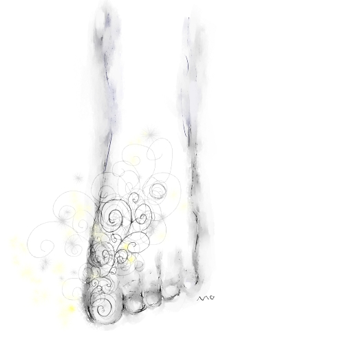 Ich habe von einem rechten Fuß geträumt. Aus dem Bereich der großen Zehe ganz vorne entwickelten sich schön geschwungene Linien, ein wundervolles Muster begann nach und nach über den ganzen Fuß zu wachsen. Der Fuß hieß: Poesie.