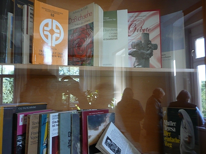 Eine Schwester führte uns ganz nach oben unters Dach in unsere Zimmer. Sperrte am Ende der Treppe eine breite weiße Türe auf. Die Zimmer und auch der ehemalige Gemeinschaftsraum sind immer noch in dem Zustand wie damals, als es das Mädcheninternat noch gab. Im zweiten Stockwerk ist das Heim für die Kinder und im ersten Stockwerk befindet sich der Raum, in dem morgen das Seminar stattfinden würde. Dort trafen wir auch eine Frau, welche gerade einen Blumenschmuck in der Mitte des Zimmers arrangierte. Wir sprachen miteinander. Sie war sehr nett und berührte beim Reden kurz meine Hand, so als würden wir uns schon ewig kennen. Sie nannte uns auch Gastwirtschaften im Ort, wo wir etwas essen konnten. Die Nonnen sprachen von einem Mann, der noch käme. Später bemerkte ich endlich, daß sie meinen Freund damit gemeint haben, der aber kurzfristig doch nicht mitgefahren ist.