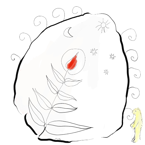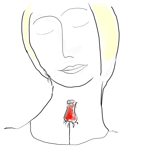 Das Bild bedeutet: Der Frau ist aus ihrem Herzen eine Rose emporgewachsen. Schon bis zum Hals.