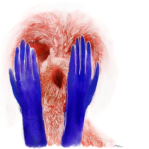 Der Vogel weint. Frau Vogel weint. Sie weint, weil sie traurig ist. Weil sie nicht weiß, was Dankbarkeit ist. Weil sie nicht dankbar sein kann.