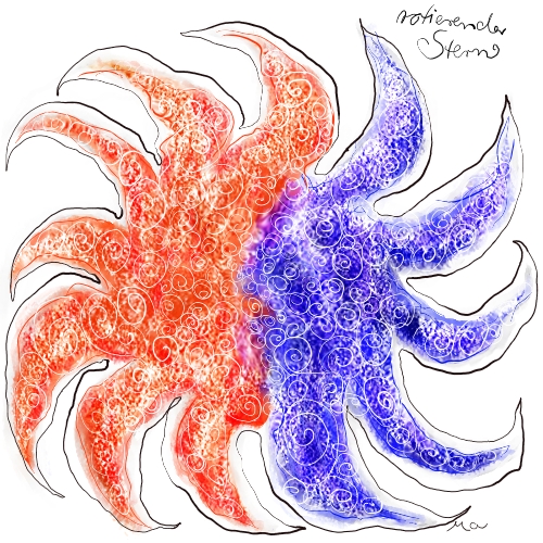 Ein rotierender Stern sinkt herab. Ein Augenstern, weil er nicht außerhalb sondern innerhalb des Auges schwimmt.