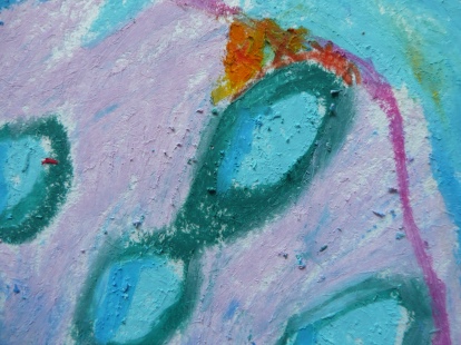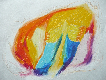 Ich träumte, daß ein Baum gefällt wurde und ich stand wie ein kleines Mädchen davor. Stand ganz nahe bei dem Baum, um zuzusehen. Meine beiden Hände hinter dem Rücken verschränkt, sehr neugierig. Mein Freund sägte Äste ab. Eine Freundin mag es auch ganz bunt und wir zeichnen zusammen. Auf ihre Vorschläge hin habe ich schon eine Idee, wie es weiter gehen könnte, und fange gleich ganz rechts an, zeichne begeistert und voller Elan ein Muster vor, ein bestimmtes Muster. Ich weiß, daß es ihr auch gefallen wird. Dann ein weißes Lamm rechts an einer Wand. (...)