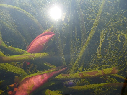 Noch ein Traum: Rettete wieder zwei Kinder aus dem Bach. In Holzschlappen ging ich durch das lehmbraun gefärbte Wasser, durch den angeschwollenen Bach. Die Kinder waren auf einem Stein mitten im Bach, ziemlich weit auf der linken Seite. Genau in Höhe der Brücke. Ich ging unter der Brücke durch das Wasser zu dem Stein. Und halte gleichzeitig noch den roten Kater in meinen Armen, während ich die beiden Kinder rettete. Das Wasser war bis zu dem Stein ganz sauber und hatte diese typisch grünstahlblaue Farbe, aber ab dem Stein war es auf einmal lehmbraun. Es machte mir nichts aus, in das Wasser zu gehen.