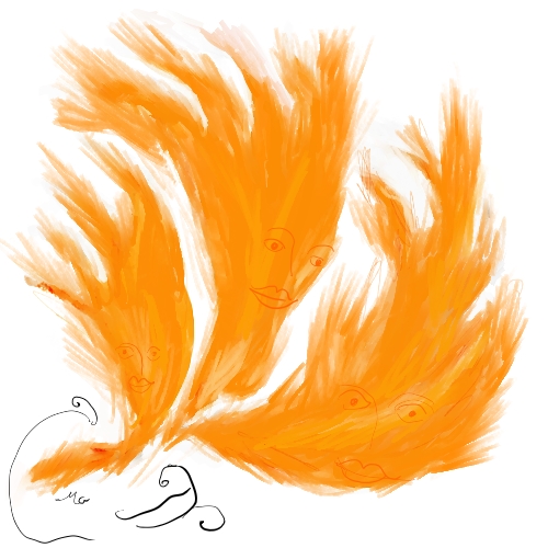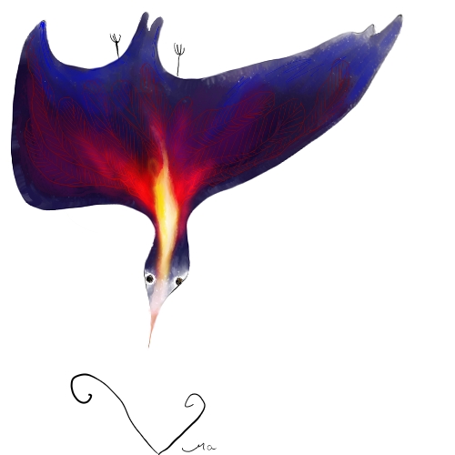 Eine Art Drache schwebte plötzlich im Zimmer, als ich die Augen öffnete. Eine Raute aus kleinen weißen Bröckelchen, daran eine lange Schnur. Er flog zu mir her, tat einen regelrechten Satz und ich erschrak sehr. Dann flog er aus dem Fenster, besser gesagt aus dem Glasschrank, der auf einmal das Fenster nach draußen war, denn alles war umgekehrt.