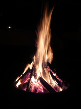 Blütenblätter regnete es über das Geburtstagskind, das fünfzig Jahre alt wurde und sich sichtlich darüber freute. Rosenblätter. Die beiden, die ihm das Ständchen gesungen haben, warfen sie händeweise, spielten Wolken. Wir saßen in vier schwarzen Pfadfinderzelten, in kreisrunden Jurten, die miteinander zu einem einzigen Zelt verbunden worden waren. Ein großer Kreis mit drei kleineren vereinigt. Und ganz in der Mitte, im Zentrum, brannte das Feuer. Es waren auch viele Pfadfinder anwesend, auch schon erwachsene Pfadfinder, die sich aber immer noch ein junges und frohes Herz bewahrt haben. Draußen sprangen langhaarige Jungs auf einem riesigen Trampolin barfuß hoch und nieder, schlugen sogar Saldos, und ich beobachtete sie eine Weile. Wehende Haare und gerötete Gesichter. Plötzlich war es gar nicht mehr kalt. Mit einem Mal war ich wieder zwölf bis vierzehn. Ließen Stecken mit langen Bändern daran rotieren, die flatterten bunt unter dem grauen Himmel. Grelle Farbbahnen. Spuren. Vor der Bar unter dem Balkon stand ein kleines Skelett. Später regnete es draußen, während wir drinnen gemütlich zusammen um das Feuer saßen. Die nette Frau neben mir auf der Bank erzählte von einer Vernissage. Sie erzählte, daß sie von der Eröffnungsrede so fasziniert gewesen war und daß diese Rede ihr fast bunter und lebendiger vorkam als die Bilder selbst, welche ausgestellt waren. Sie war immer noch ganz verwundert darüber. Sie erzählte das auf einmal, einfach so. Eigentlich wollte sie gar nicht zu der Ausstellungseröffnung, eine Freundin hatte sie mitgenommen, und dann fand sie es so besonders. Das Geburtstagskind sagte, es saß eins weiter auf der Bank und blickte wie wir alle ab und zu ins Feuer, wie gern es unter Menschen sei, daß man sich nur unter Menschen erkennen könne. Er sagte das in anderen Worten, ich kann nur noch den Sinn in etwa wiedergeben. War schon müde, das Feuer brannte, loderte manchmal, aber irgendwie klangen die Worte der beiden eindrücklich in mir nach. Wir sangen Lieder. Wir sangen zum Beispiel: Take me home, country roads und Leaving on a Jet Plane.