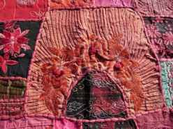 Aus Indien bekam ich einen wunderschönen Kissenbezug und duftenden grünen Kardamom mitgebracht. Bekam es in einer braunen Packpapiertüte überreicht. Auf dem Kissen ist ein Tor gestickt. Ein prachtvoller Durchgang in eine andere Welt, daran erinnert mich die Stickerei mitten darauf. Hinter dem Tor schimmert es schwarz und rot wie als sei dort eine andere Dimension. Das Tor ist mit silbernem und goldenem Rankenwerk bespannt. Der Hausherr, der Patriarch der Familie, welche die kleine Ayurveda-Klinik führt - er war ansonsten eher zurückgenommen und redete nicht viel -, ist nach der Ankunft zur Begrüßung noch einmal ganz unerwartet in sein Zimmer gekommen und hat mehrmals ernst in gebrochenem Englisch zu ihm gesagt: You are a part of the family. Vergesse es nicht.