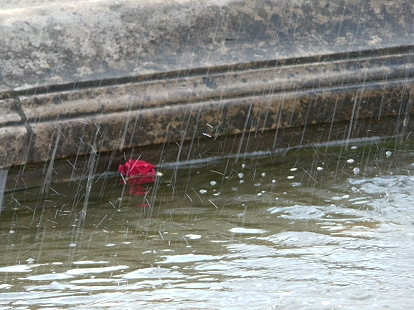 Ich habe alle Zimmerpflanzen hinaus in den warmen Regen gestellt. In den Mairegen. Obwohl es noch April ist, regnet es Mai.