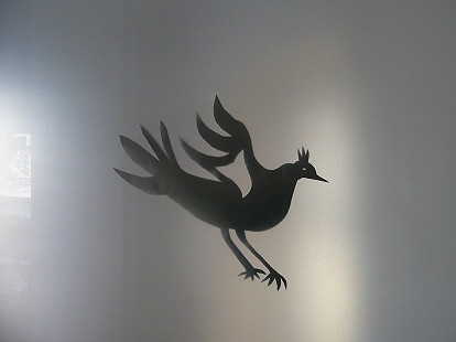 Ich habe etwas aus dem Goldpapier ausgeschnitten, einen großen Vogel. Einen stolzen Vogel. Einen Vogel, der mit seinen Flügeln schlägt und seine Schwanzfedern gespreizt hält. Er ist wunderschön.
