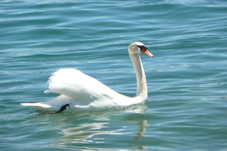 Ich machte einen Stopp in Reichenau, um die berühmten romanischen Kirchen anzuschauen. Während ich durch den Sommermorgen ging, traf mich plötzlich ein feuchter Tropfen auf der rechten Wange, der von dem blauen Himmel zu regnen schien. Es war von einem Vogel. Ein anderer kleiner Vogel sang jubilierend in einem Baumwipfel. Schwäne schwammen auf dem spiegelglatten See, der blaugrün funkelte.