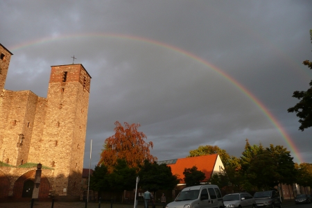 Nachdem ich durch die Unterführung gebogen war stand unverhofft ein wunderschöner großer Regenbogen leuchtend am Himmel. Genau dort, wo ich hinwollte. Meine Müdigkeit verflog und ich klingelte an der Türe der Ferienwohnung, um meinen Gäste abzuholen.