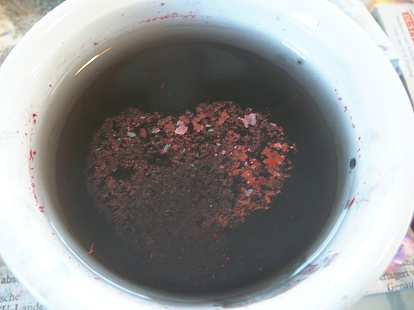 Sie führte mich herein und zeigte mir ihr neuestes Bild, das sie aus dem Büchlein abgemalt hatte, was ich ihr einmal geschenkt hab. Einen bunten Sommerblumenstrauß mit einer chinesischen Figur daneben. Es wird eine Geburtstagskarte.