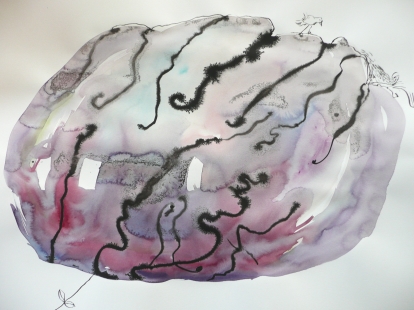 Ein Traum ging so: Alle schrieben ihren Namen in eine Liste und kreuzten an, was sie geträumt hatten. Es ging darum, ob sie an Gnade glauben oder ob sie von Gnade geträumt haben. Sie unterschrieben für Gnade. So in der Art. Sogar Frau D, eine Freundin meiner Mutter, hat sich eingetragen. Das Blatt Papier war in Zeilen unterteilt und hinter jeder Zeile war ein Symbol. Ein quadratisches schwarzes Feld, in dem wie zwei geschwungene Hände, welche einen Keim, einen Samen, schützend umfaßten, diagonal von links unten nach rechts oben aufsteigend, dargestellt war. Oder wie eine Knospe von zwei Blütenblättern umhüllt. Und dieses Zeichen bedeutete Gnade. Es hat mich auch etwas an eine Sonnenfinsternis erinnert. Eine liegende Gnade. Aber das Schlimme war, das ich als einzige von allen hineinschreiben werde: ohne Gnade. Das war sehr schlimm.