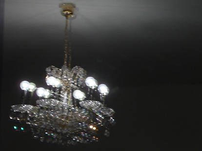 Mein Freund hat mir einen alten, ausrangierten Kronleuchter mitgebracht, der jetzt aufgehängt worden ist. Und zwar deshalb, weil schon vor einiger Zeit die Zimmerleuchte mit der Glasabdeckung explodiert war, da ich zwei Energiesparbirnen anstatt der herkömmlichen Glühbirnen montiert und nicht daran gedachte habe, daß dieser Leuchtentyp wegen der stärkeren Hitzeentwicklung und des Alters vielleicht gar nicht dafür ausgelegt sein könnte. Auf jeden Fall ist die bauchig geformte Abdeckung aus Milchglas nur wenig später - ich saß gerade am Schreibtisch - mit einem lauten Knall über mir explodiert und zu tausend Splittern zerstoben. Was für eine Bescherung!