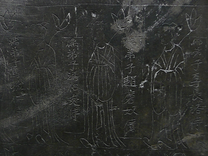 Die Vorder- und auch die ganze Rückseite der Stele ist in aufwendiger Art und Weise mit fein eingeritzten Mustern und Bildern verziert, welche bestimmt eine tiefere Bedeutung haben: vielleicht erleuchtete Menschen, aus denen Blumen gewachsen waren.