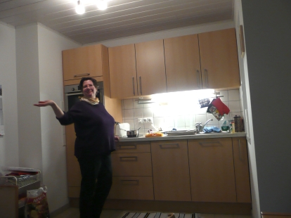 Aßen am kleinen Tisch, der an der Wand unter dem Bild mit dem Jesuskind und dem Vogel stand. Es war sehr heimelig. Erzählten uns unsere Träume. Sie erzählte einen lustigen Traum vom Dalai Lama, den sie hatte. Wir fielen von einem Abhang auf ihn und erdrückten ihn dabei fast, aber zum Glück ist er trotzdem heilgeblieben und spornte uns dann an, weiter den Weg zu dem Gemeindehaus hoch oben auf dem Berg zu gehen.
