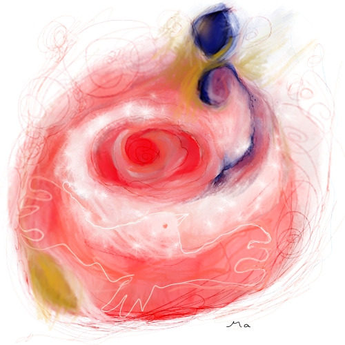 Ein Traumbild von dem Zodiakus, von dem Tierkreis mit seinem Zentrum. Im Zeichen der Fische ein Mann mit geöffneten Armen in einem roten Gewand, Jesus. Viele Strahlen gingen vom Zentrum dorthin. (Eigentlich sah ich in dem Traumbild nur das obere linke viertel des Tierkreises.) Besonders das rote Gewand war sehr eindrücklich, als läge eine besondere Bedeutung in ihm.