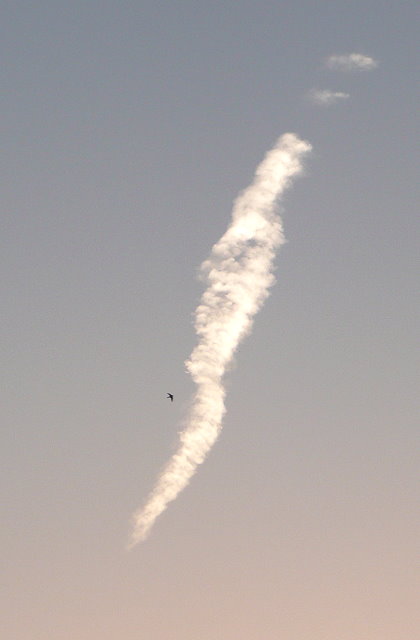 Morgenhimmel mit kleiner Schwalbe, um sechs Uhr früh