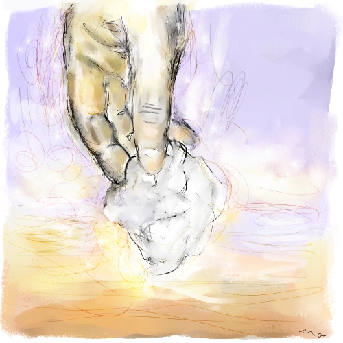 Die Geschichte von Raphael und Tobias mag ich sehr. Die heilende Hand. Die Hand des Sohnes Tobias heilen die Augen des Vaters Tobit mit der Galle eines Fisches.