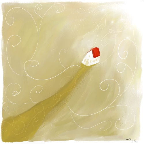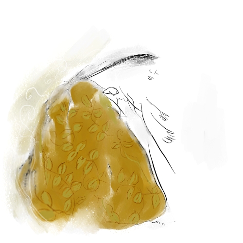 Das Bild erinnert mich auch an einen Traum von einer lieben Freundin, in dem auch Zettel vorkamen. Sie waren in goldene Kugeln versteckt und von den Männern für “die Frauen”.