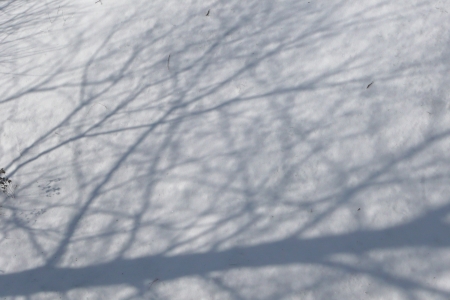 Eine menschliche Fußspur im Schnee, wie ein Regenbogen.