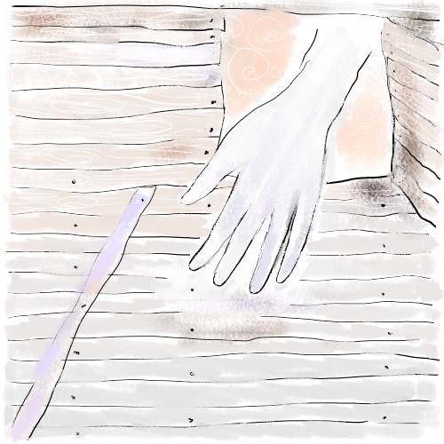 Ein weißer Bretterverschlag und eine weiße Hand, die sich daraus zurückzieht