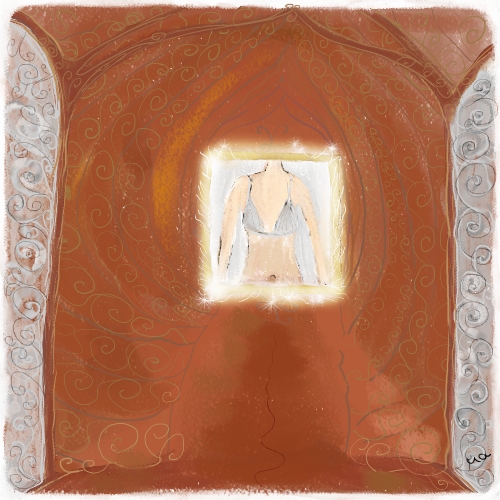 “Wie hast Du das nur gemacht?”, fragte ich plötzlich erwacht, als sich die Türe leise öffnete und er in das Zimmer trat. Es war mitten in der Nacht. Die Oberste der drei Milchglasscheiben der Zimmertüre leuchtete rosa und war nicht mehr schwarz. Darauf ein wunderschön geschwungenes mit zarter Linie gemaltes Mandala.