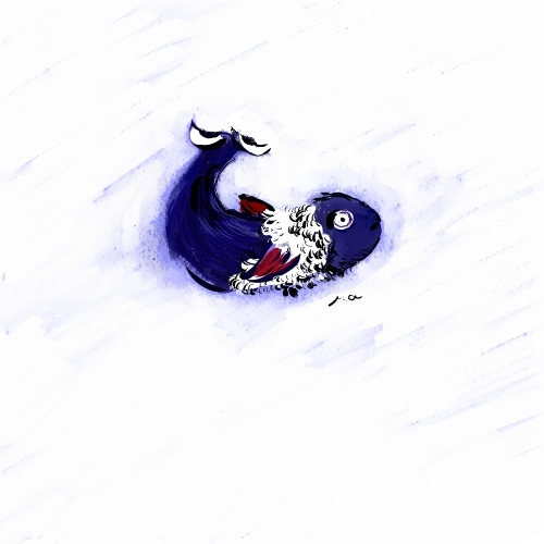 Ich träumte von einem großen Fisch, welchen ich unter einem hölzernen Tisch fand, der an einer Hauswand stand. Der Fisch war mindestens so groß wie ich und sah aus wie eine Forelle. Er hatte weiße Punkte seitlich enlang seines Bauches. Ich rettete ihn von diesem Ort. Umarmte ihn. Tat ihn wieder ins Wasser zurück, in seinen Bach, damit er nicht sterben würde. Er war seltsamerweise mit einer weißen Schnur mit mir verbunden, ähnlich wie die beiden Fische im Sternbild Fische miteinander verbunden sind.