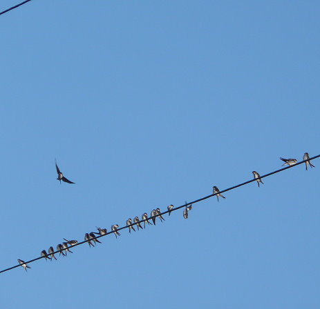 Morgentoilette: Die jungen Schwalben tummeln sich über dem Werkstattdach