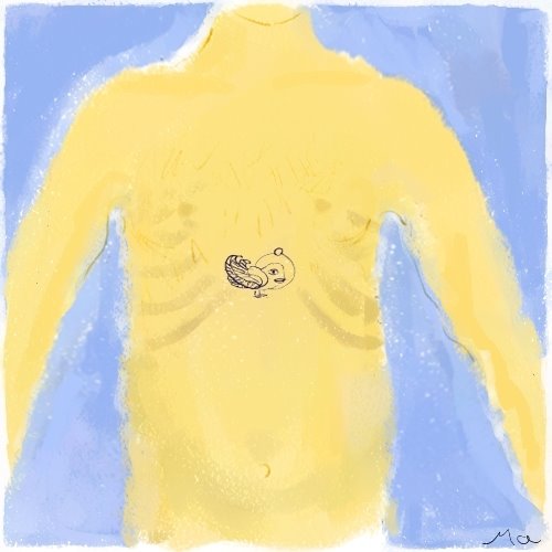 Der Junge aus dem fernen Land trug ein himmlisches Wesen genau auf der Spitze seines Brustbeines tätowiert. Auf seinem Sternum.
