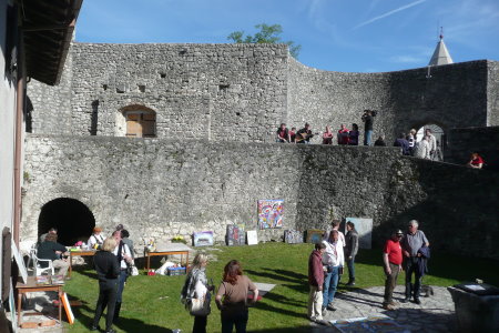 Künstler und Oldtimerfahrer auf der Burg Grobnik im Gespräch
