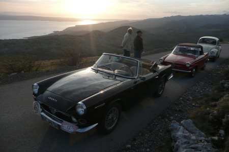Ich war auf einer 7tägigen Reise mit Oldtimern nach Kroatien, CroArtia, einer besonderen internationalen Veranstaltung, wozu der Oldtimerclub Rijeka eingeladen hat. Die Idee dazu war spontan auf dem Concours d’Elegance in Schwetzingen 2011 durch die Zusammenarbeit mit dem Kunstverein Syrlin eV International und dessen Vorsitzenden entstanden. Wir waren schließlich 14 ganz unterschiedliche Teams, die unter der Leitung von Johannes Hübner das Wagnis auf sich genommen haben mit ihren ebenfalls ganz unterschiedlichen historischen Fahrzeugen auf Achse nach Rijeka und zurück zu fahren. Ein Test für die Zuverlässigkeit und Ausdauer von Mensch und Maschine! Besonders hervorzuheben ist auch ein Teilnehmer, welcher, trotzdem er an dem Rollstuhl gefesselt ist, die lange Fahrt in einem speziell umgebauten dunkelgrünen Aston Martin DB 2/4 meisterte. Jedes Team hatte zudem die Aufgabe, eine Art lustiges Fahrtenbuch mit Skizzen und Reiseeindrücken zu gestalten. Leider ist meines nicht sehr umfangreich ausgefallen, dafür ist aber das unseres Organisators umso schöner. In Kroatien sind wir unter anderem mit Künstlern zusammengekommen, die im Rahmen dieser Veranstaltung auf der Burg Grobnik bei Čavle arbeiteten. Das war interessant und faszinierend. Besonders beeindruckend und liebenswert waren aber vor allem auch die Herzlichheit und Fröhlichkeit unserer kroatischen Gastgeber.