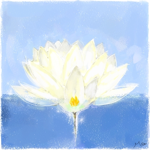 Eine weiße Seelrose, in deren Mitte eine kleine Flamme brennt