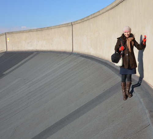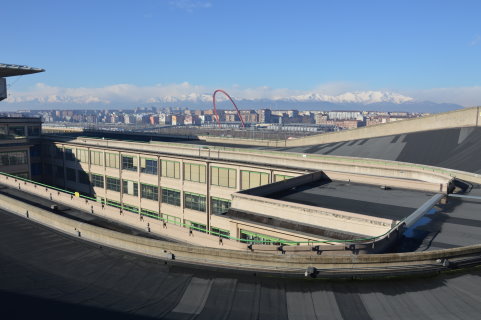 Die spektakuläre Teststrecke auf dem ehemaligen Fiat-Werk Lingotto in Turin, dahinter, zum Greifen nahe, die Alpen