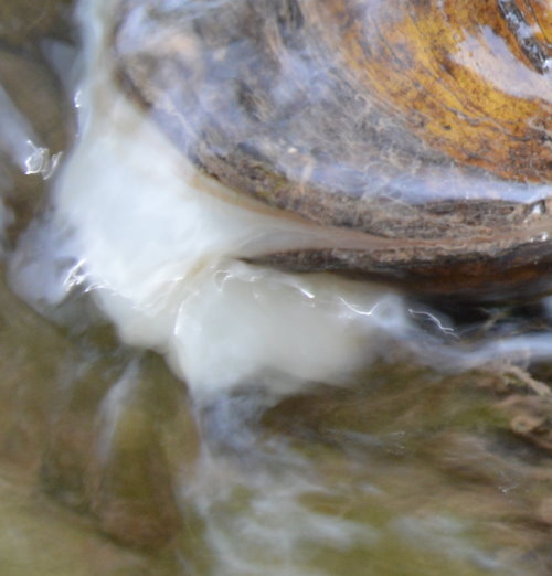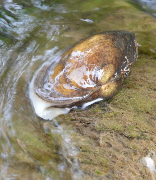 Eine große goldbraune Bachmuschel, gerade bei ihrer Hochzeit
