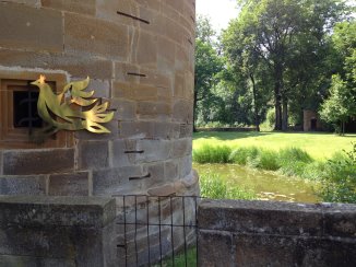 Wir waren die ersten Besucher und bis auf dem Küster, der später die große Taufkerze entzündet hat, alleine. Wir erfuhren auch, warum er dies tat, denn als wir durch die Pforte wieder auf den sonnendurchfluteten Platz getreten waren wartete dort bereits eine kleine Taufgesellschaft - das blutjunge modische Paar mit einem entzückenden liebenswerten Säugling wie Mehl und Pfirsich in weißem Tüll und in Decken gehüllt im Arm - einzutreten.